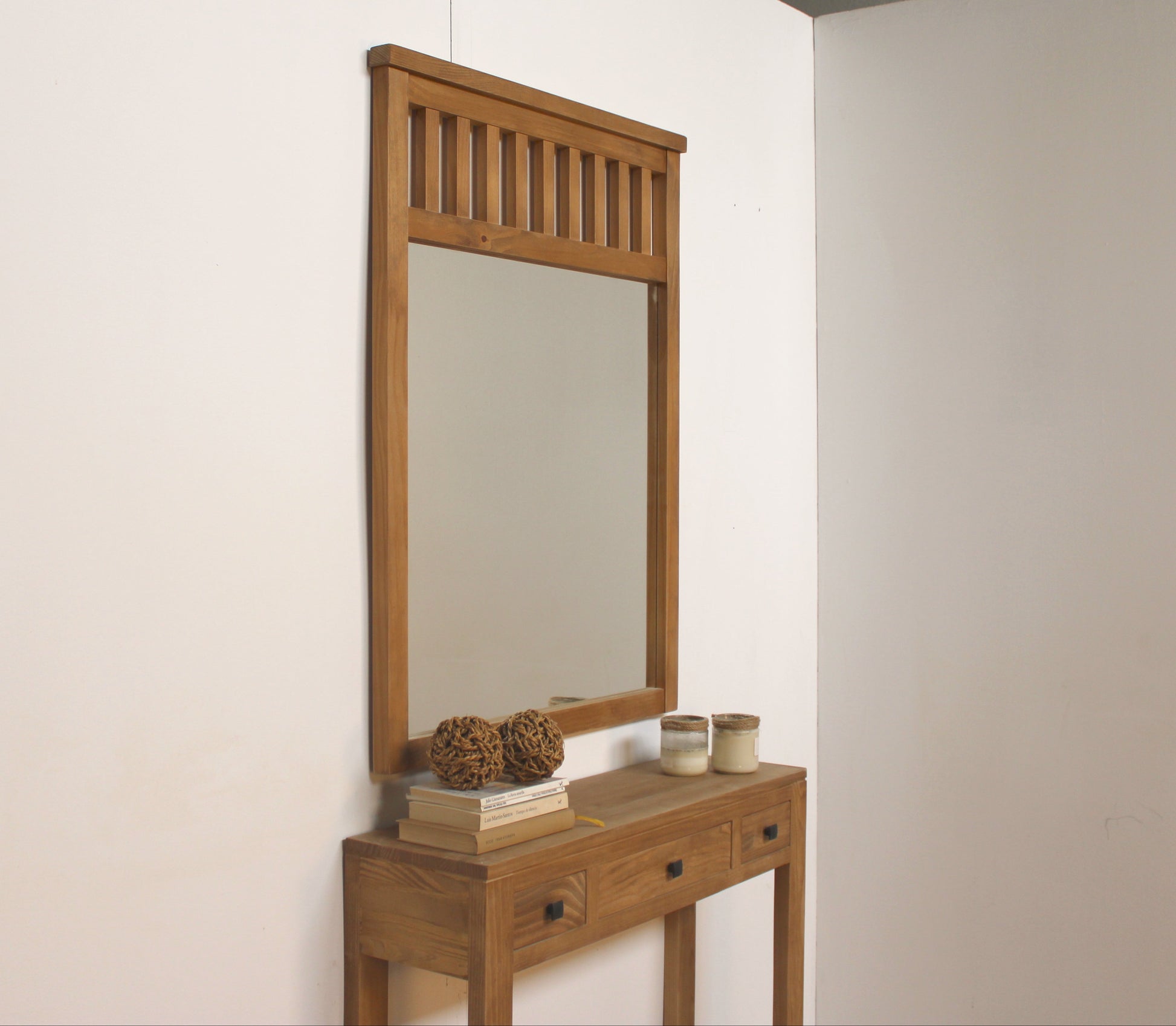 Espejo Porto en madera maciza de pino.