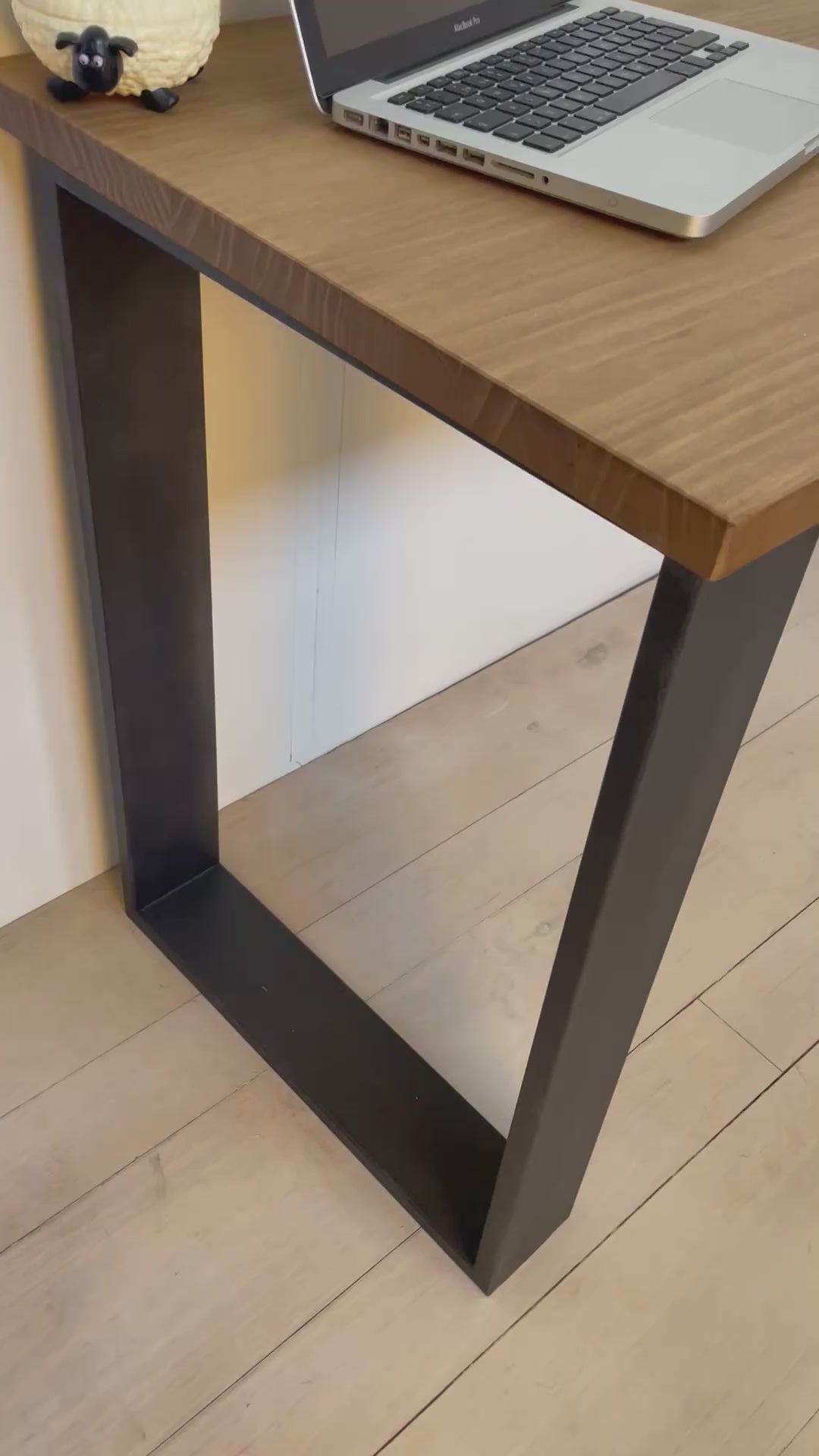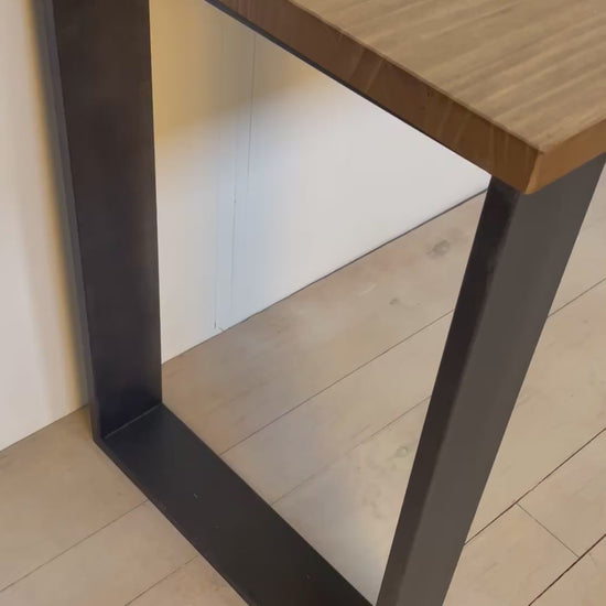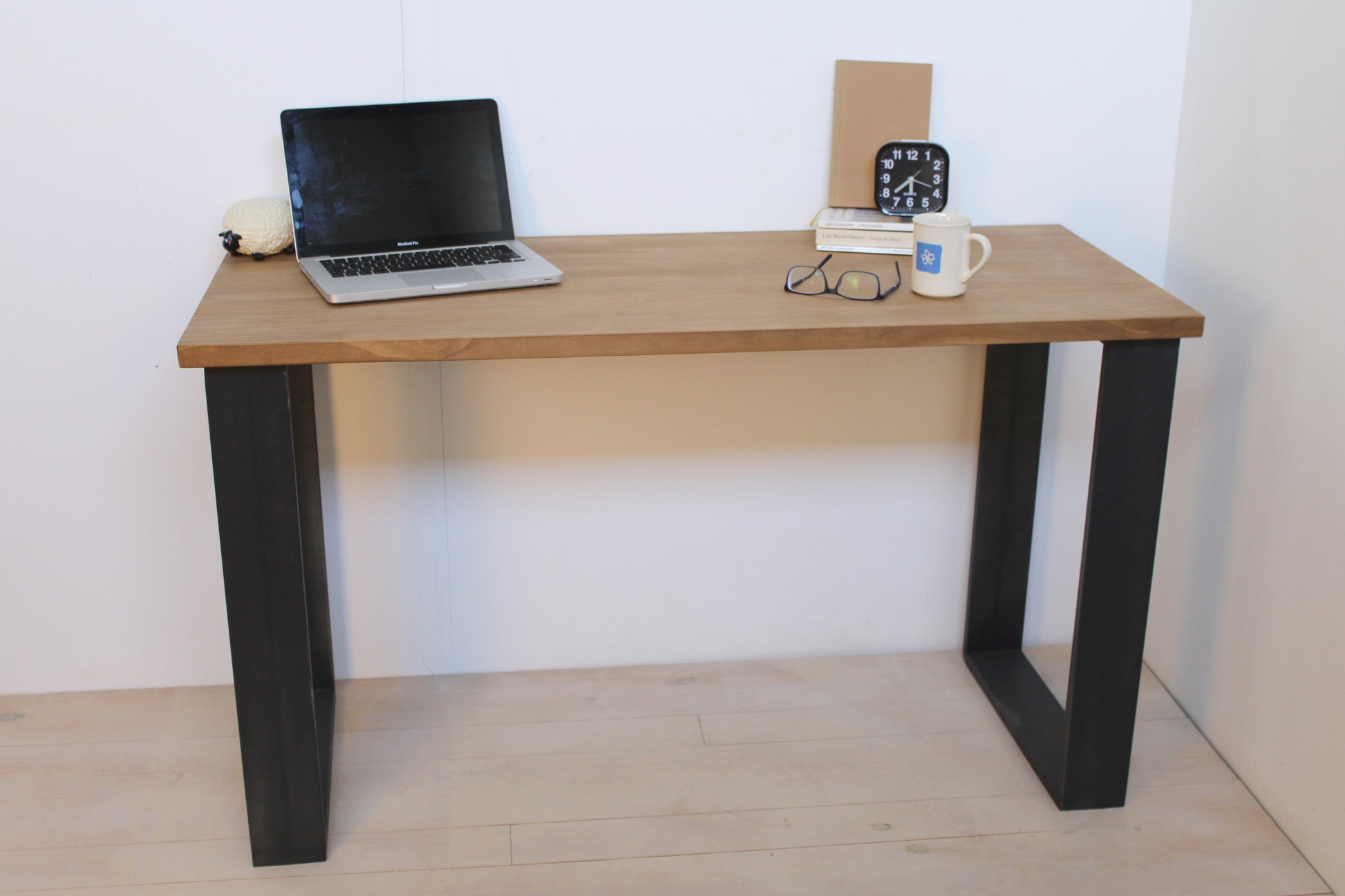 Mesa escritorio Lyra en madera maciza de pino y pie de forja