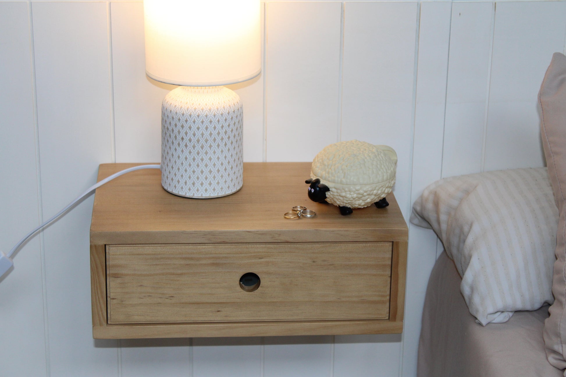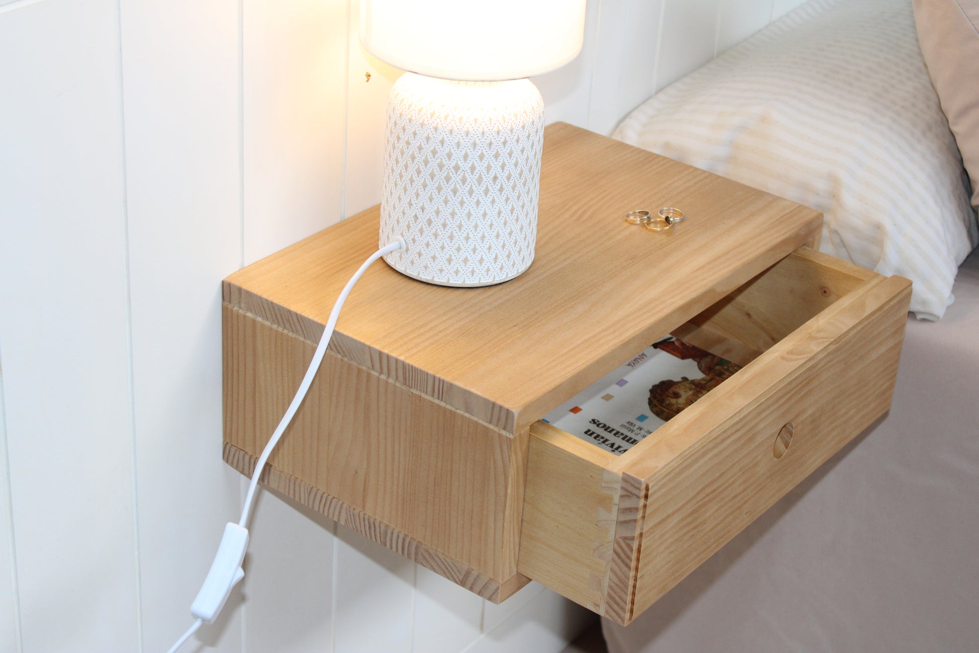 Mesita noche colgante 1 cajón Aura en madera maciza de pino.