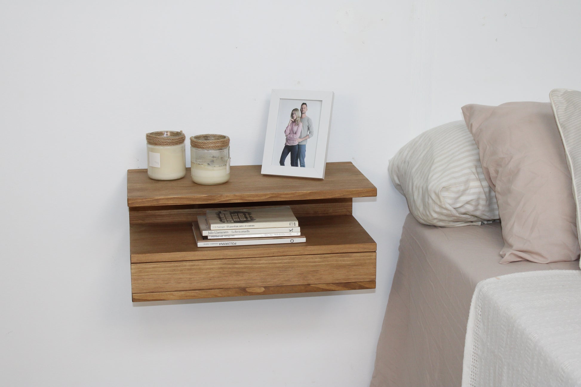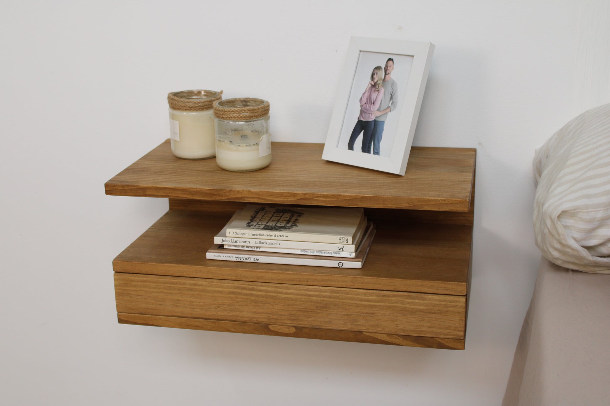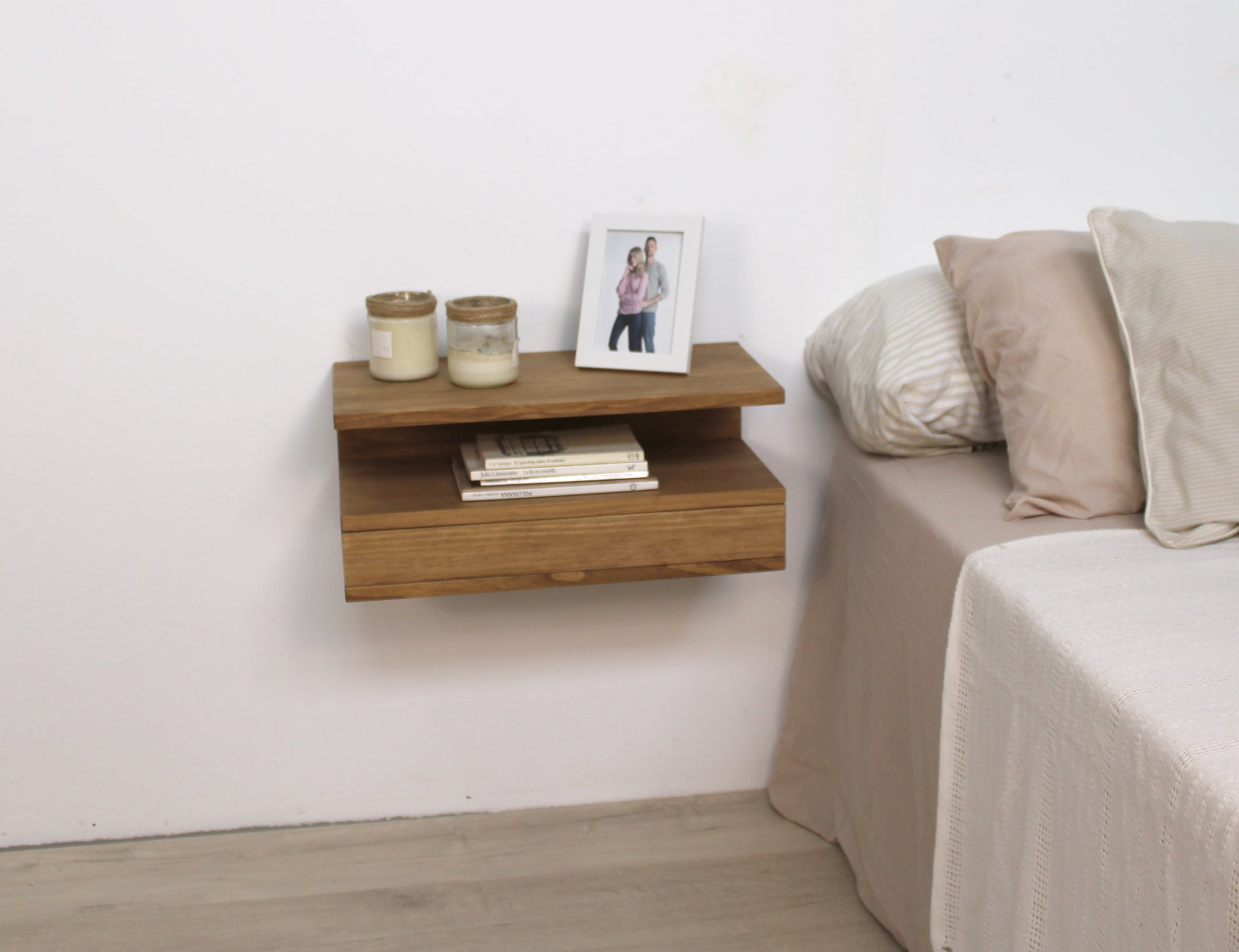 Mesita noche flotante/colgante con 1 hueco/ 1 cajón en madera maciza de pino.