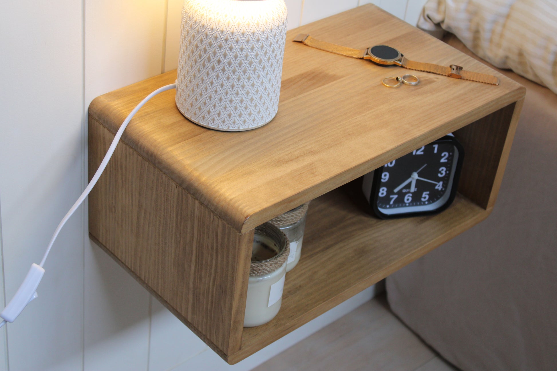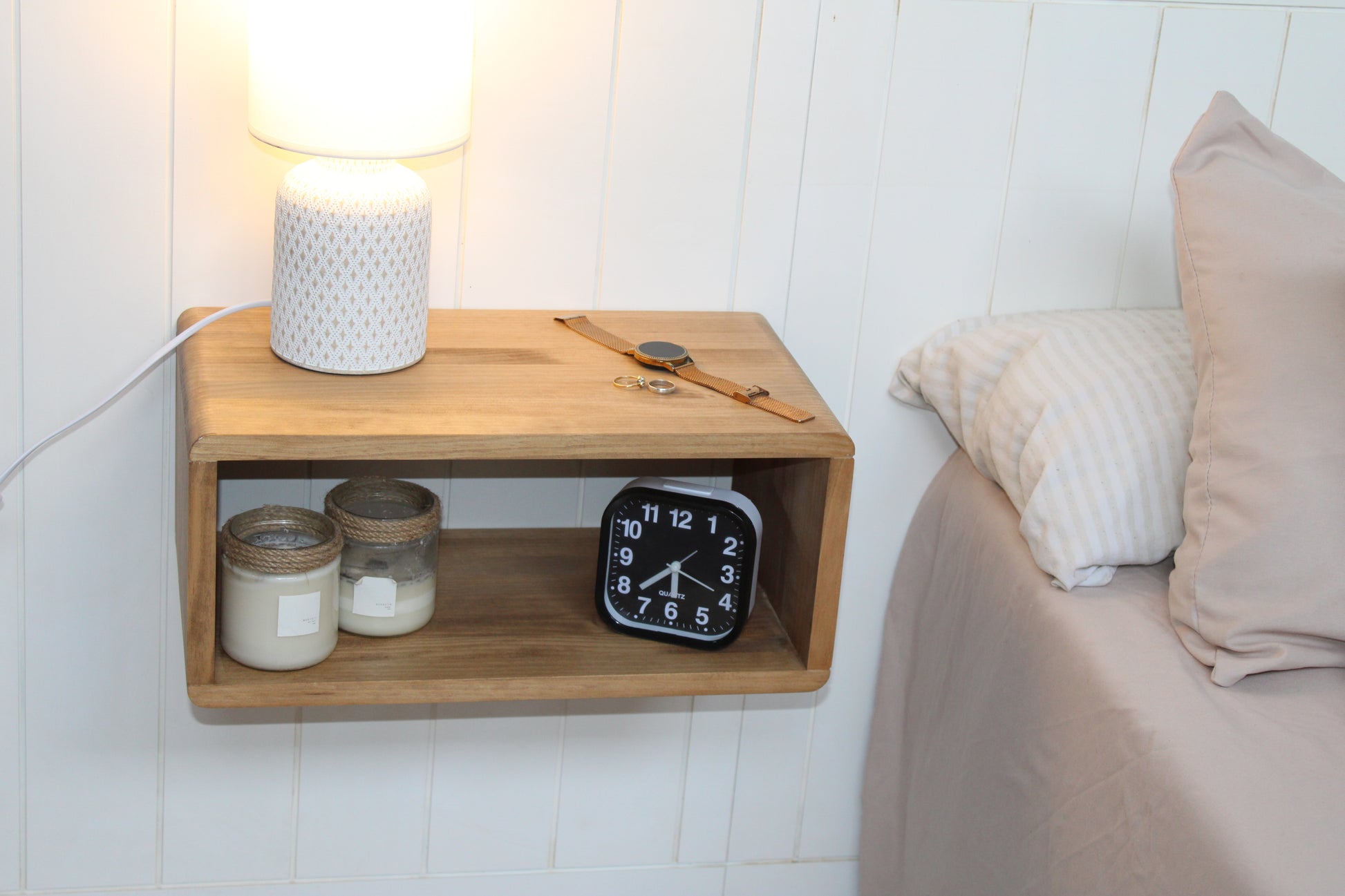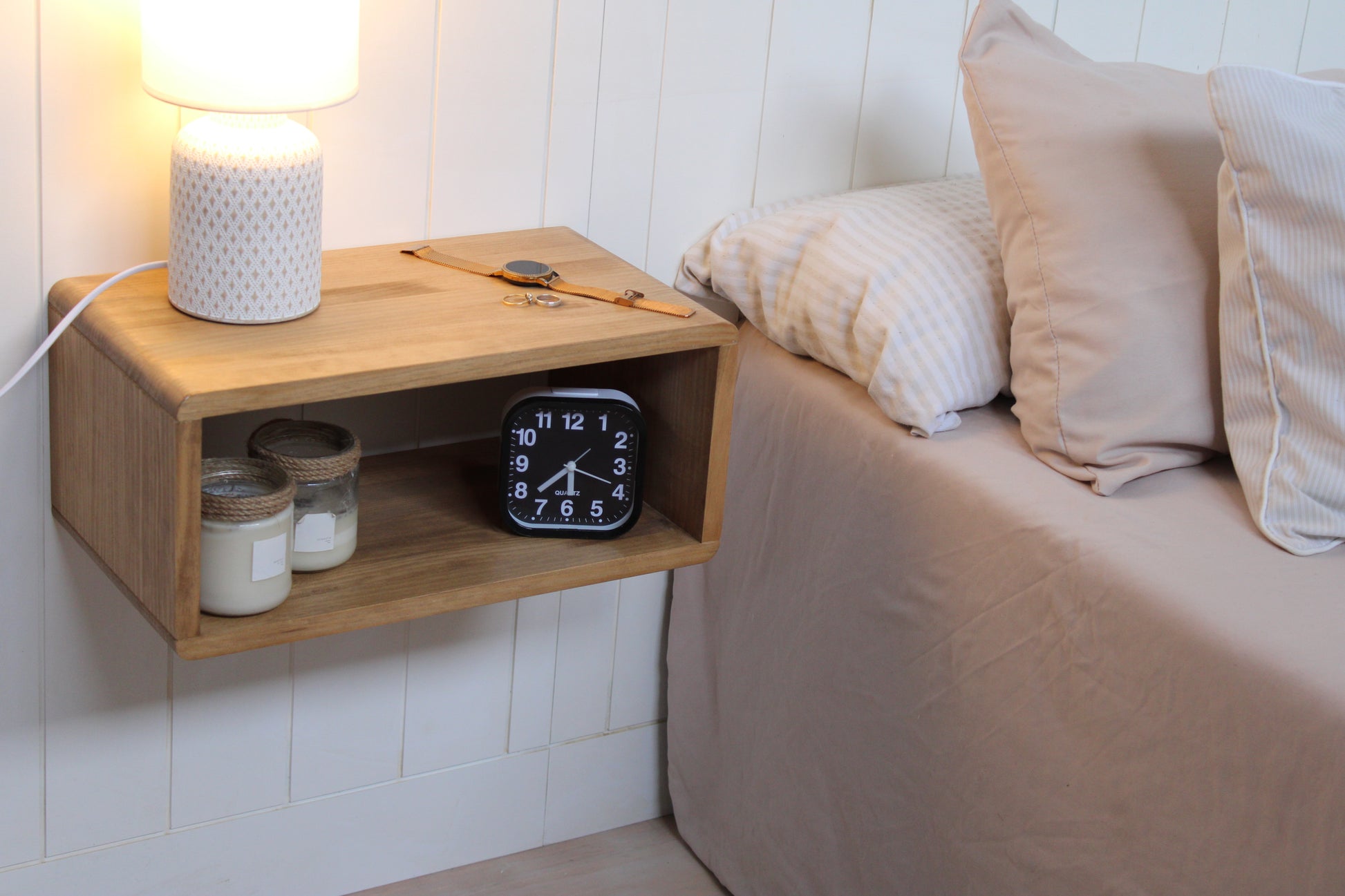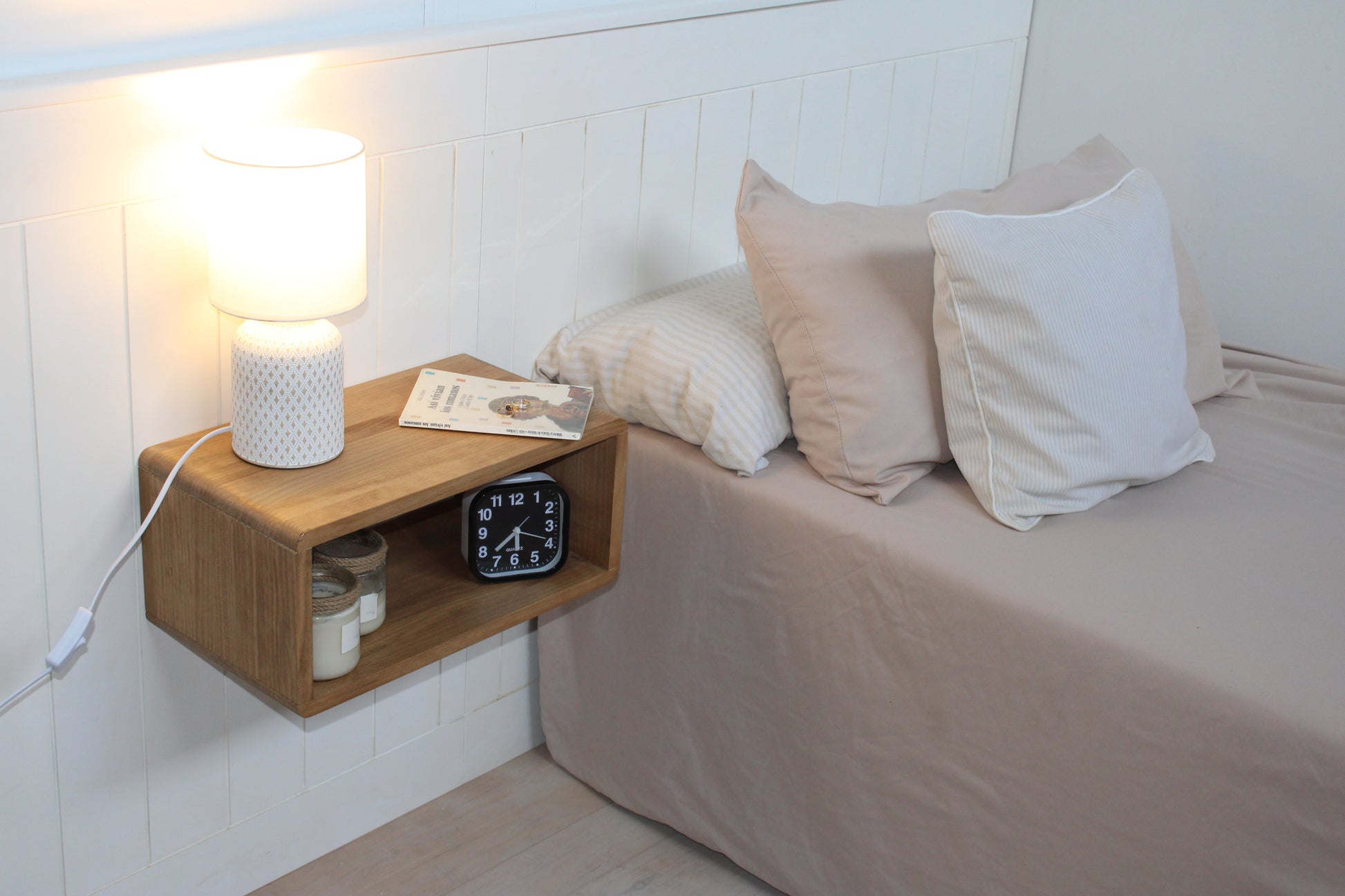 Mesita de noche diáfana Erea en madera maciza de pino.